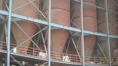 氧化鋅回轉窯除塵過程是從煙化爐煙氣到淋水冷卻器到表面冷卻器到前排風機到袋式除塵器...